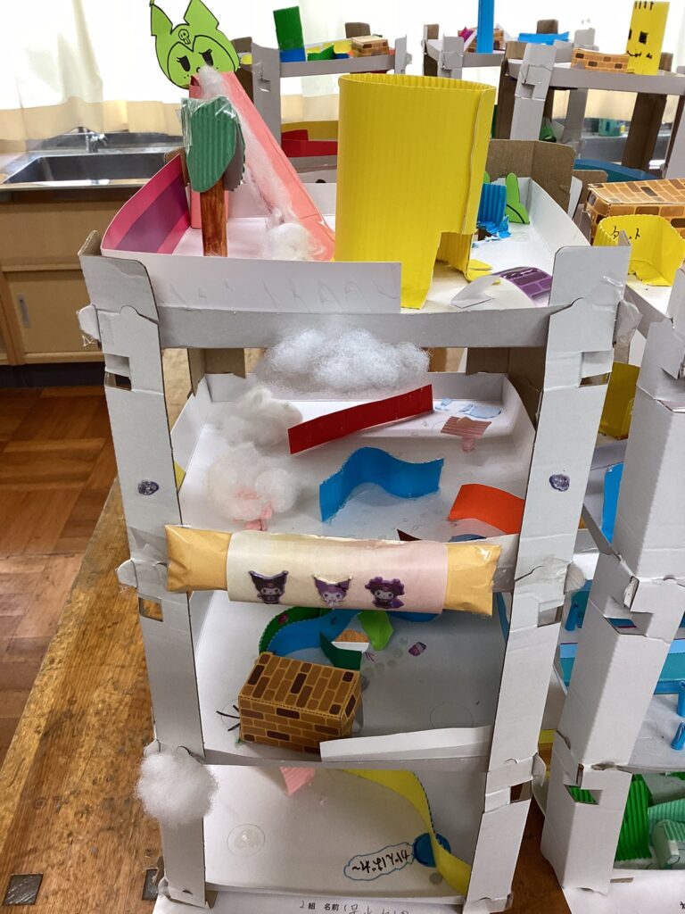 4年生が図工の学習でコロコロガーレを作成しました。 そして、1年生を招待し、コロコロガーレ体験会を開いてくれました! 4年生は優しく遊び方を教え、1年生は夢中になって玉を転がしていました。 笑顔と歓声があふれる、楽しい時間となりました。 -